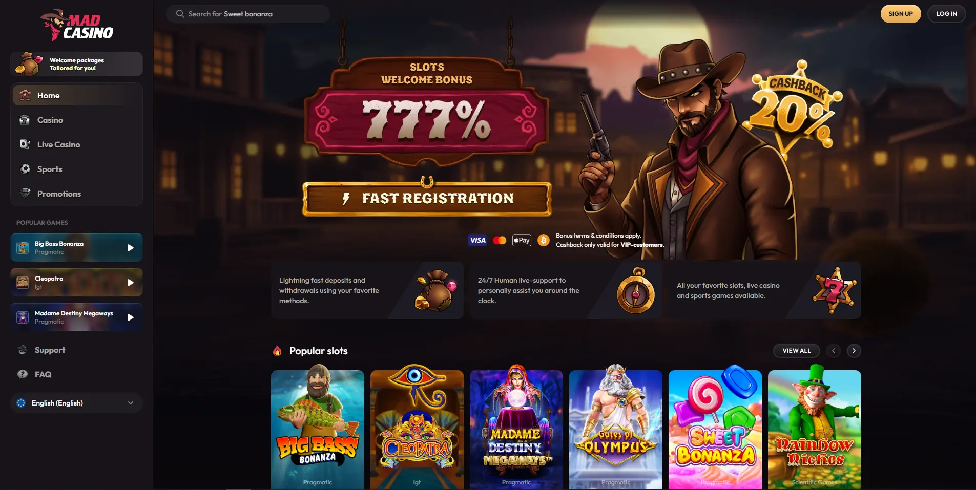 Mad Casino is a non-GamStop casino and sportsbook built for players who bet bigger than average. It offers high-limit live tables, flexible sports betting, crypto payments, and a clear VIP system with rising withdrawal limits.
