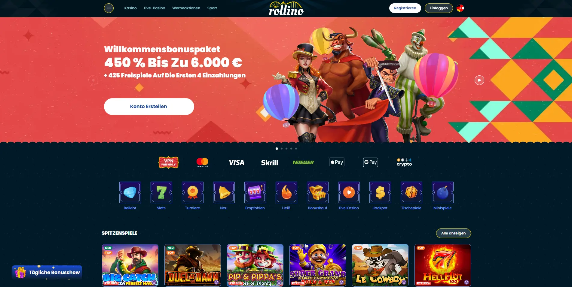 Rollino is a non-GamStop online casino and sportsbook offering 9,000+ games, high-limit live tables, crypto payments, and a VIP program, but with capped bonuses and withdrawals.