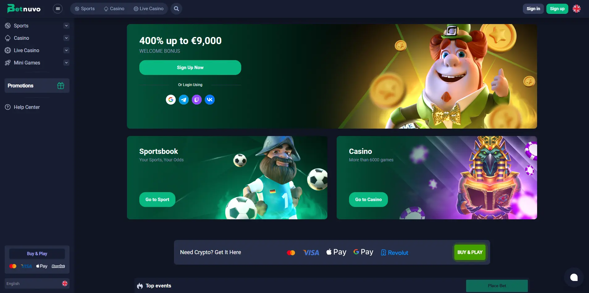 - Available Games: Betnuvo offers an extensive selection of games, including slots, table games, and a variety of live options.